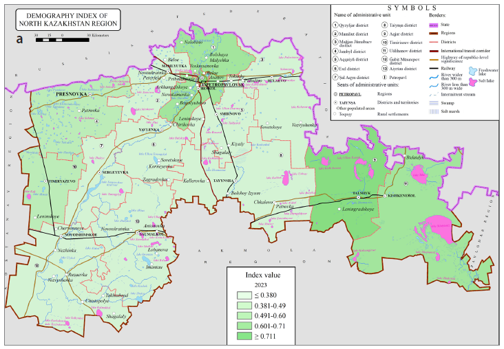 social sustainability, demographic structure, spatial differentiation, North Kazakhstan Region, GIS, sustainability index, sustainable development goals