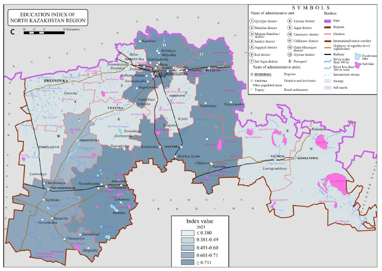 This study quantitatively assesses social sustainability across the North Kazakhstan Region’s districts using a composite index. Emphasis is placed on selecting relevant indicators aligned with the SDGs and regional conditions, applying normalization techniques and using cartographic analysis. Spatial disparities are highlighted, and an evidence base is provided for a differentiated regional policy aimed at promoting sustainable territorial development.