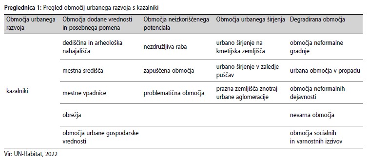 Slika 5: Pregled območij urbanega razvoja s kazalniki