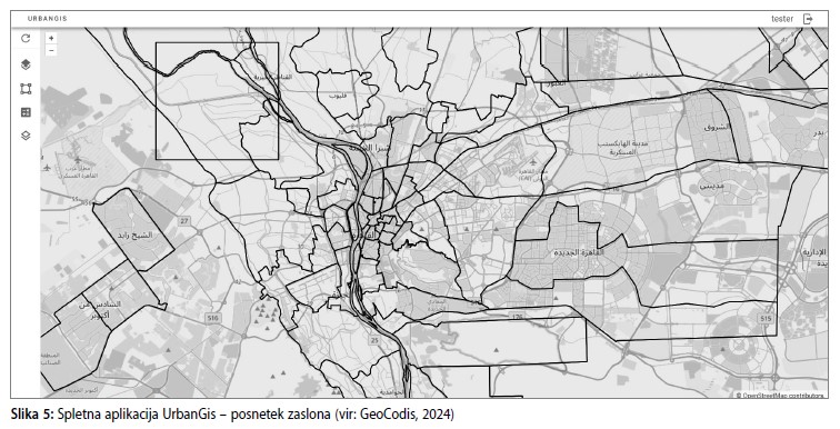 Slika 6: Spletna aplikacija UrbanGis – posnetek zaslona (vir: GeoCodis, 2024)