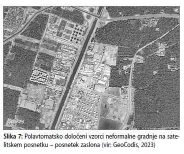 Slika 8: Polavtomatsko določeni vzorci neformalne gradnje na satelitskem posnetku – posnetek zaslona (vir: GeoCodis, 2023)
