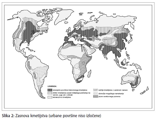 Slika 2: Zasnova kmetijstva (urbane površine niso izločene)
