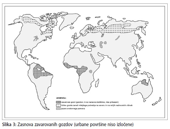 Slika 3: Zasnova zavarovanih gozdov (urbane površine niso izločene)
