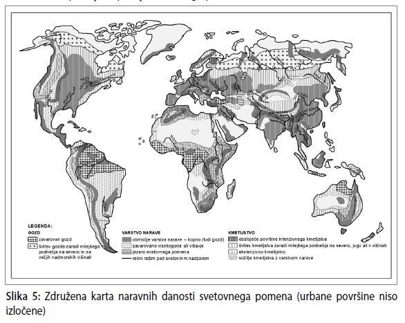 Slika 5: Združena karta naravnih danosti svetovnega pomena (urbane površine niso izločene)