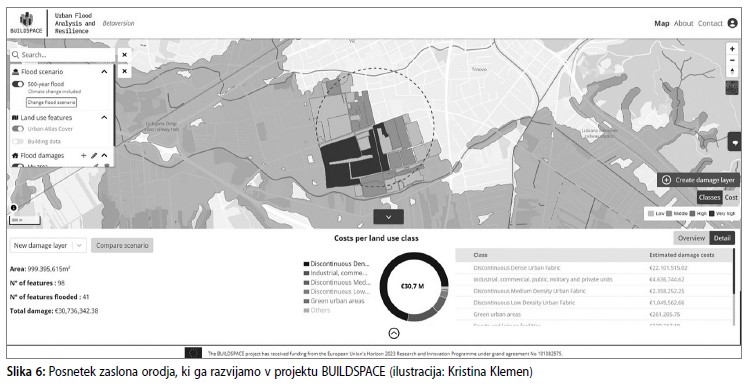 Slika 7: Posnetek zaslona orodja, ki ga razvijamo v projektu BUILDSPACE (ilustracija: Kristina Klemen)