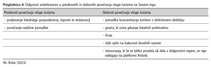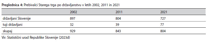 Stara mestna središča se v zadnjih desetletjih soočajo z različnimi procesi družbene, funkcijske in prostorske preobrazbe, pri čemer na njihov razvoj in podobo pomembno vplivata zlasti procesa gentrifikacije in turistifikacije. V zadnjih dveh desetletjih je precejšnjo družbeno in funkcijsko preobrazbo, ki je večinoma posledica sodobnih urbanizacijskih procesov, doživel tudi Stari trg v Ljubljani. V članku sta predstavljena procesa gentrifikacije in turistifikacije, ki smo ju na podlagi različnih metod potrdili na tako majhnem območju, kot je Stari trg. Ker se lokalno prebivalstvo izseljuje predvsem zaradi negativnih vplivov, ki jih prinašata turizem in povečano število obiskovalcev, lahko govorimo tudi o procesu turistične gentrifikacije. Vpliv turizma pa se kaže tudi v funkcijski zgradbi, saj se je v dveh desetletjih občutno povečalo število gostinskih in nastanitvenih obratov. Kljub temu so rezultati ankete o bivalnih razmerah pokazali, da večina prebivalcev ocenjuje bivanje na Starem trgu kot kakovostno.