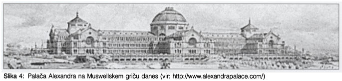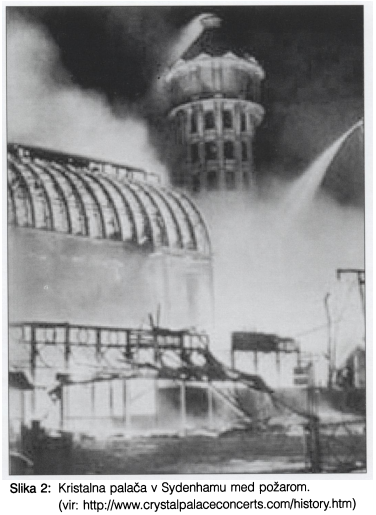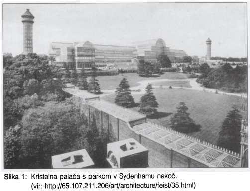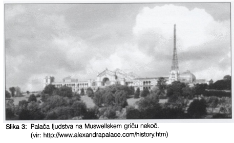 Članek predstavlja arhitekturo in uporabo obeh londonskih kristalnih palač. Prva je Kristalna palača v Sydenhamu, druga pa Aleksandrina palača na Muswellskem griču. Imata nekaj skupnih značilnosti. Osnovni železni konstrukcijski sistem obeh so uporabili že za dve svetovni razstavi, po končani prireditvi pa so ju razstavili in isti konstrukcijski sistem znova sestavili v nekoliko drugačno obliko. Lokacija obeh je bila zunaj središča Londona, na razgledni točki sredi prostranega parka. V obeh so prirejali kulturne, izobraževalne in športne prireditve, zaradi katerih sta postali najbolj obiskani londonski zabavišči v drugi polovici devetnajstega stoletja. Naštete so arhitekturne prednosti in slabosti kristalnih palač kot arhitekturnega tipa, in poudarjena vloga kristalnih palač v vrtnem mestu Ebenezerja Howarda.