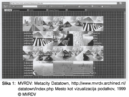 Ključni vidiki digitalne tehnologije niso vizualne narave, zato se opisovanje podobe mesta in njegovih upodobitev v digitalni kulturi opira na ugotovitev, da so novi mediji po načinu izraza metajezik. Članek poskuša razčleniti formalne, strukturne in družbene značilnosti preslikav mesta v virtualna okolja.